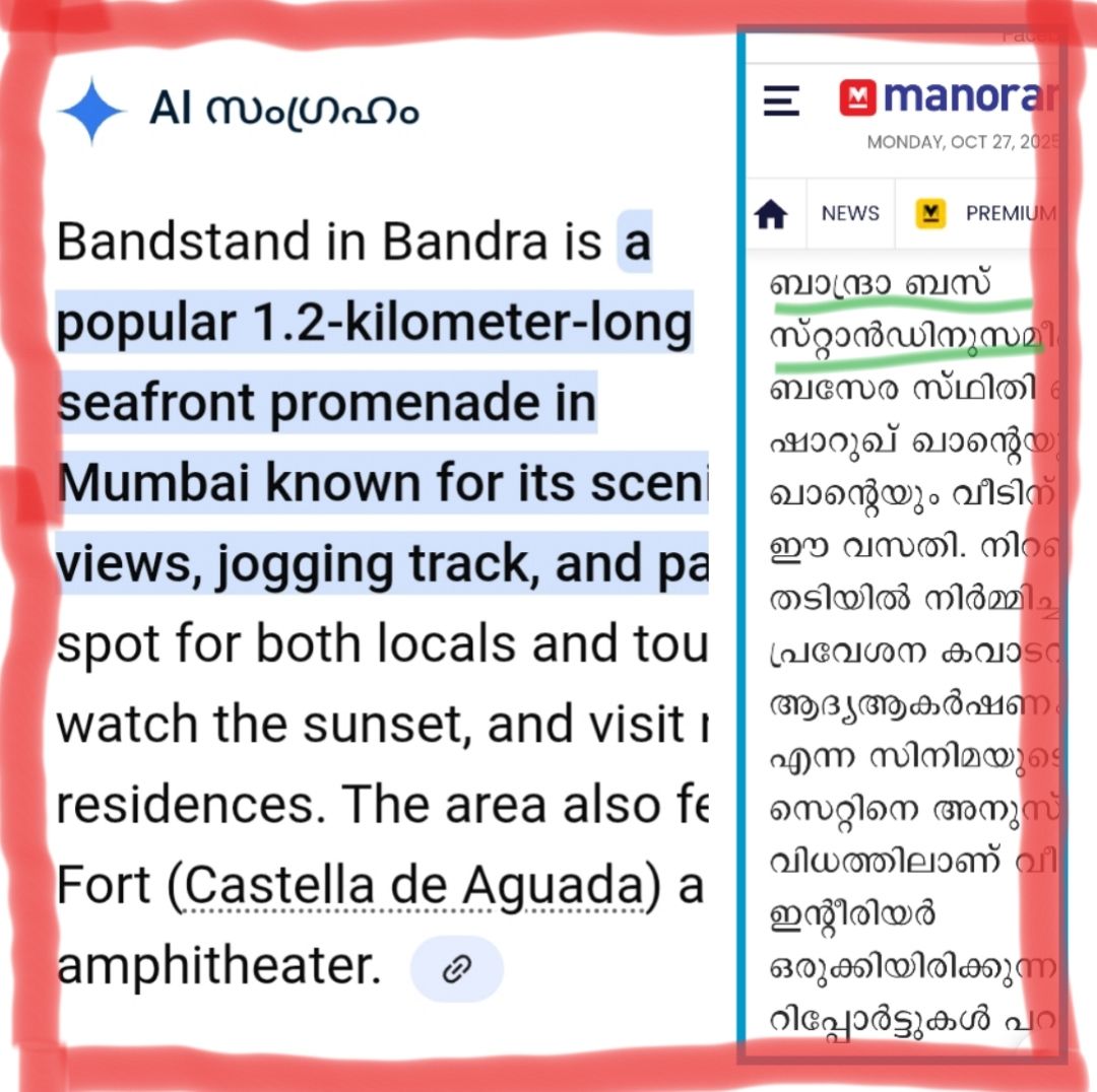 മ.എ:- എടോ… അത് ബാന്ദ്ര ബസ്സ് സ്റ്റാൻഡ് ആണ്. വടക്കേ ഇന്ത്യയിലെ വിവരമില്ലാത്തവന്മാർ അങ്ങനെ പല മണ്ടത്തരങ്ങളും എഴുതി വെക്കും. നമ്മൾ അതിലൊന്നും വീഴരുത്. നമ്മൾ ഇന്ത്യയിൽ ഏറ്റവും പ്രചാരത്തിലുള്ള പത്രങ്ങളിൽ ഒന്നാണ്. അത് മറക്കരുത്.